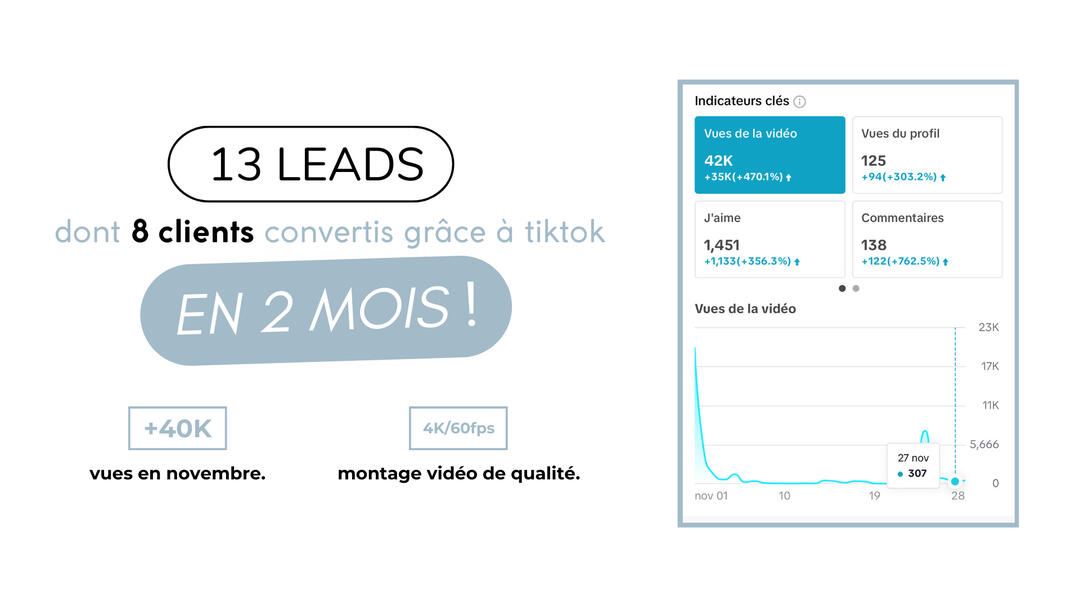 En pleine reconversion professionnelle, Virginie m'a fait confiance pour créer de A à Z sa direction artistique. Après 6 mois de collaboration, j'ai réalisé une refonte de celle-ci, car le projet avait besoin de prendre un nouveau virage.La gestion des réseaux sociaux et son site internet ont également suivi le même chemin. Nous sommes passés de 3 publications par semaine à 5 vidéos par semaine, ce qui explique les très bons résultats.